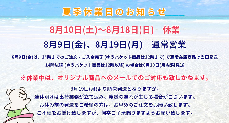 ゴールデンウィーク休業日 8月10日(土)~8月18日(日)