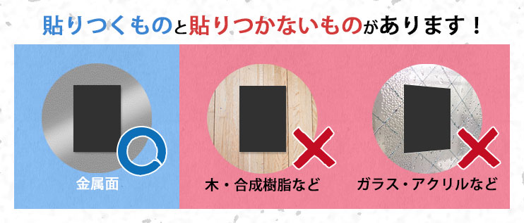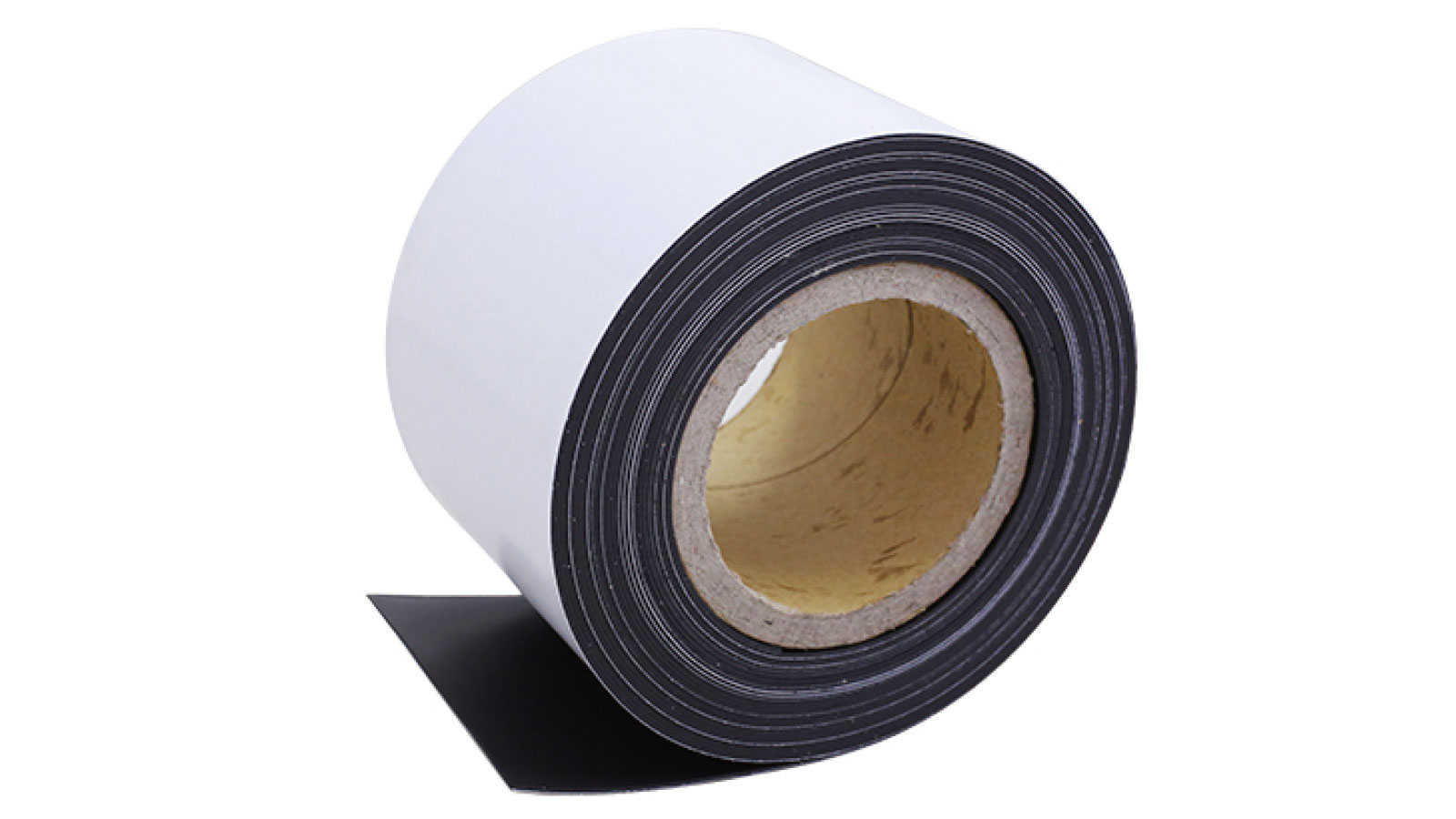 片面に粘着性をもつマグネットシートです。必要分だけカットして、金属面につけたいものの裏に接着すれば、なんでもお手軽にマグネット化できる便利な商品です。